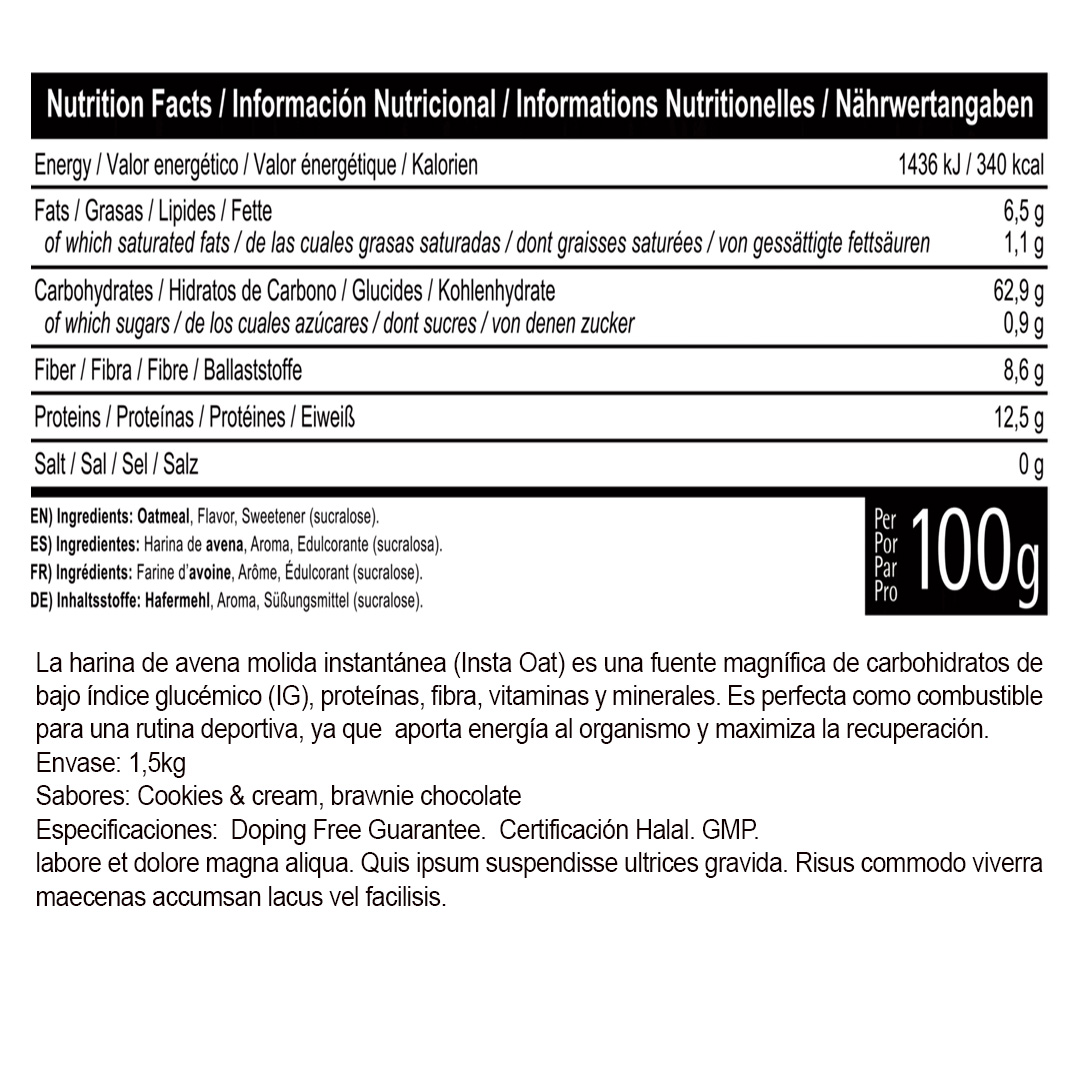 Harina de Avena. Instant Oat Meal (Avena Molida Instantánea) una fuente magnífica de carbohidratos de bajo índice glucémico, perfecta como combustible para tu rutina deportiva